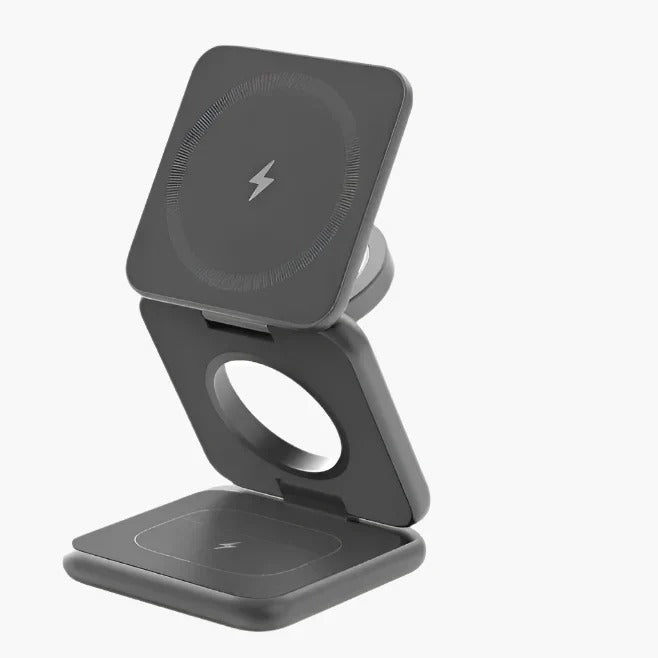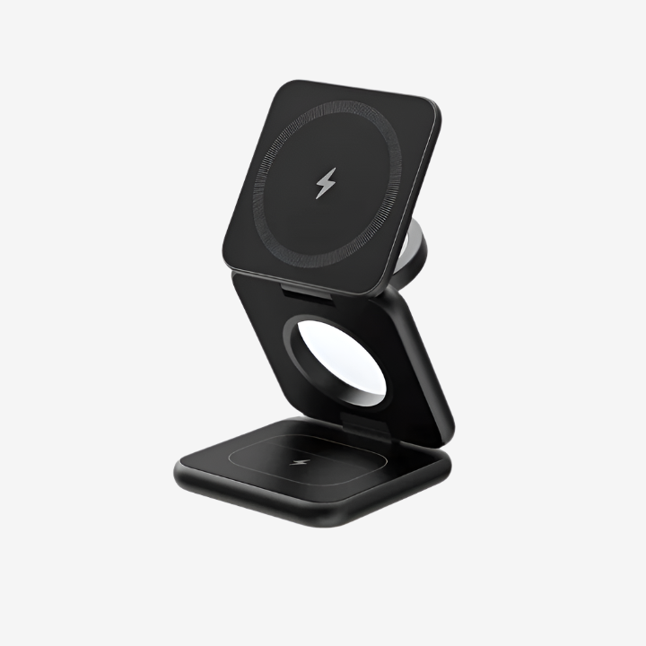 Unfold power on demand with this TrioMag Wireless Pad Charger — a sleek, foldable charging pad that delivers smart charging for your phone, watch, and earbuds all at once. Built for travel, work, or home, this magnetic charger combines convenience, compatibility, and style.