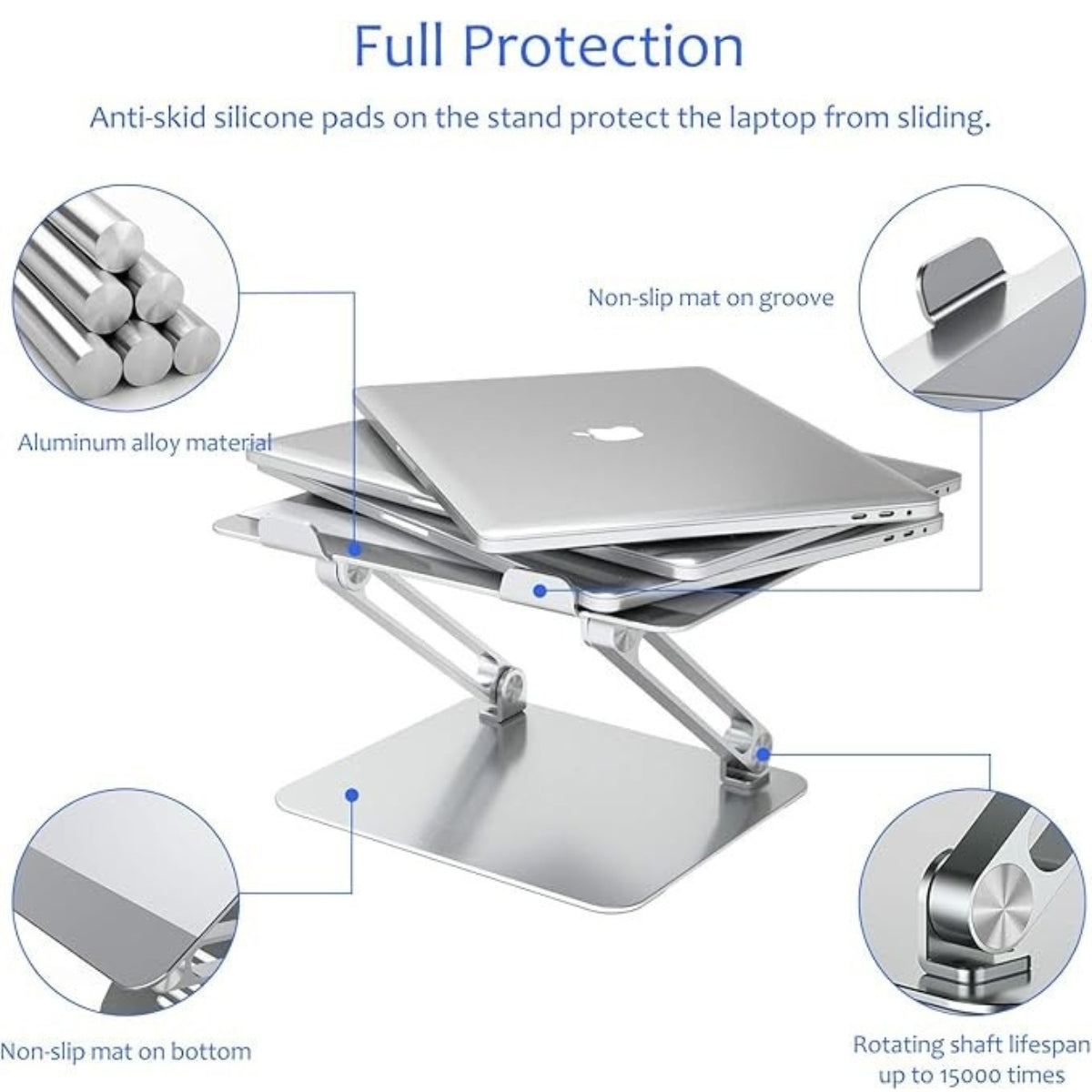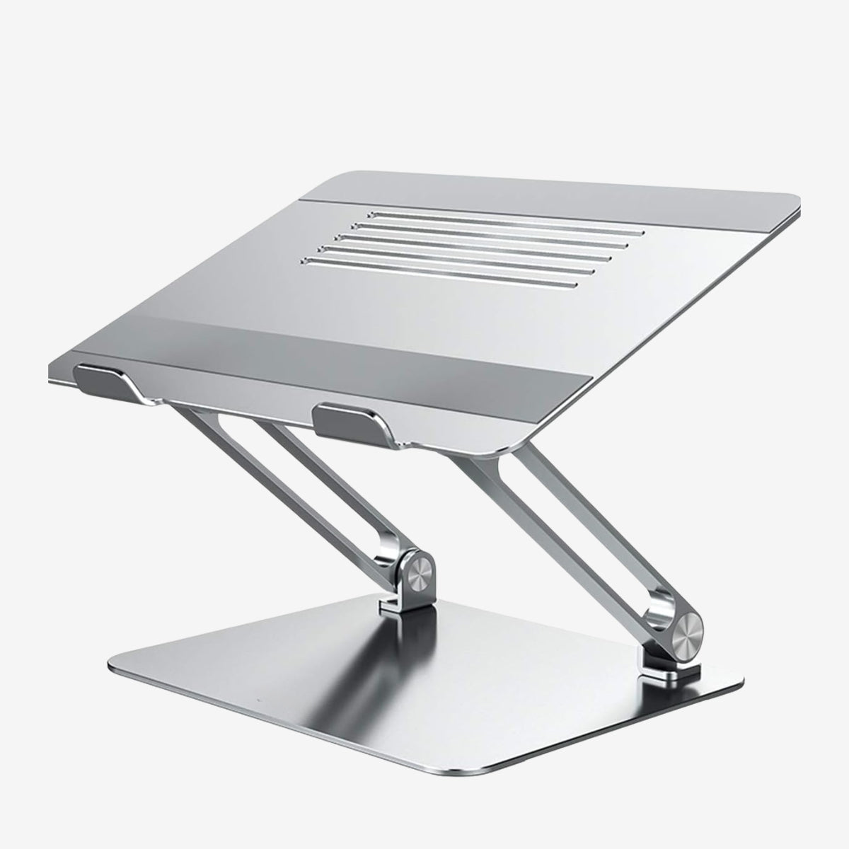 This adjustable laptop stand is crafted from durable aluminum alloy, offering both strength and a sleek appearance. With a compact size of 19.7 × 23.5 × 28.5 cm, it fits easily on most desks.